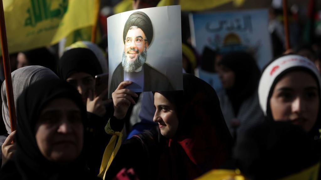 Getty ImagesPendukung Hizbullah berkumpul di alun-alun al-Ashoura di pinggiran selatan Beirut untuk mendengarkan pidato pemimpin Hizbullah, Hassan Nasrallah, pada 3 November 2023 di Beirut, Lebanon.