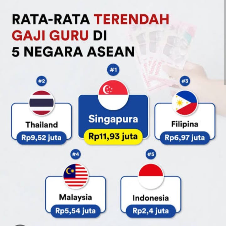 Ia menegaskan tidak ada niat merendahkan profesi guru. “Justru sebaliknya, saya ingin menegaskan guru adalah profesi yang sangat mulia, karena dengan ketulusan hati merekalah generasi bangsa ditempa,” ungkapnya. Kontroversi itu membuat sorotan kembali tertuju pada fakta bahwa kesejahteraan dan gaji guru di Indonesia masih yang terendah di Asia Tenggara. Bagaimana perbandingannya?
