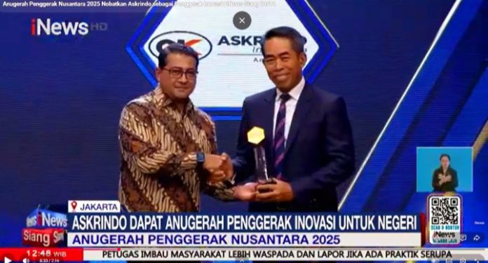 Konsistensi Askrindo pada program ini mendapatkan Apresiasi Anugerah Penggerak Inovasi Untuk Negeri yang diserahkan langsung oleh Teuku Riefky Harsya selaku Menteri Ekonomi Kreatif / Kepala Badan Ekonomi Kreatif kepada Direktur Utama Askrindo, M Fankar Umran, dalam ajang Anugerah Penggerak Nusantara 2025 yang diselenggarakan oleh INewsgroup di Jakarta.